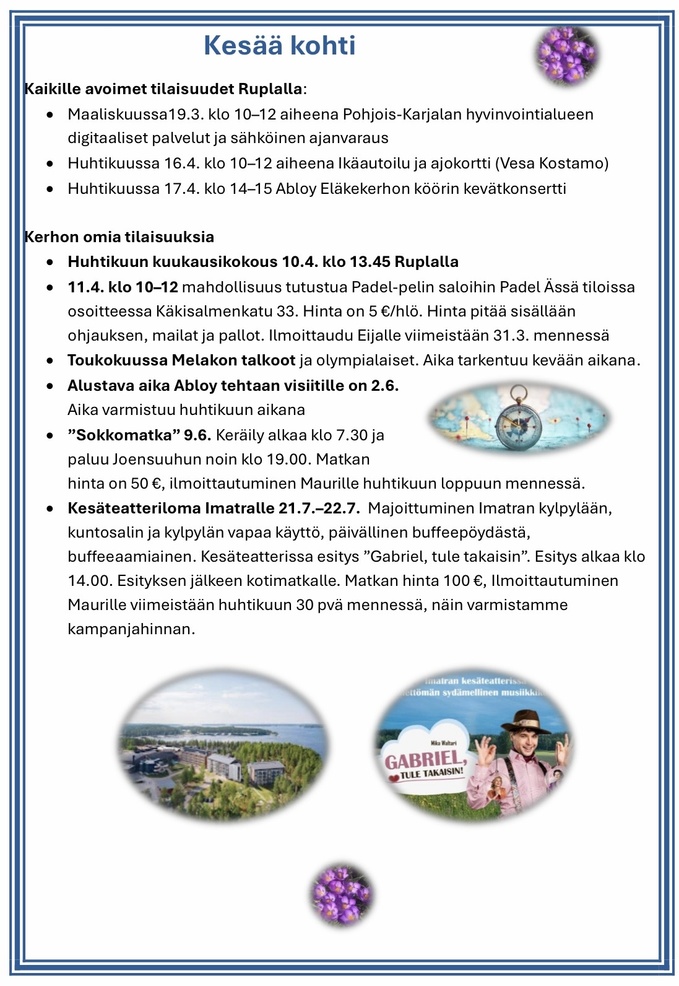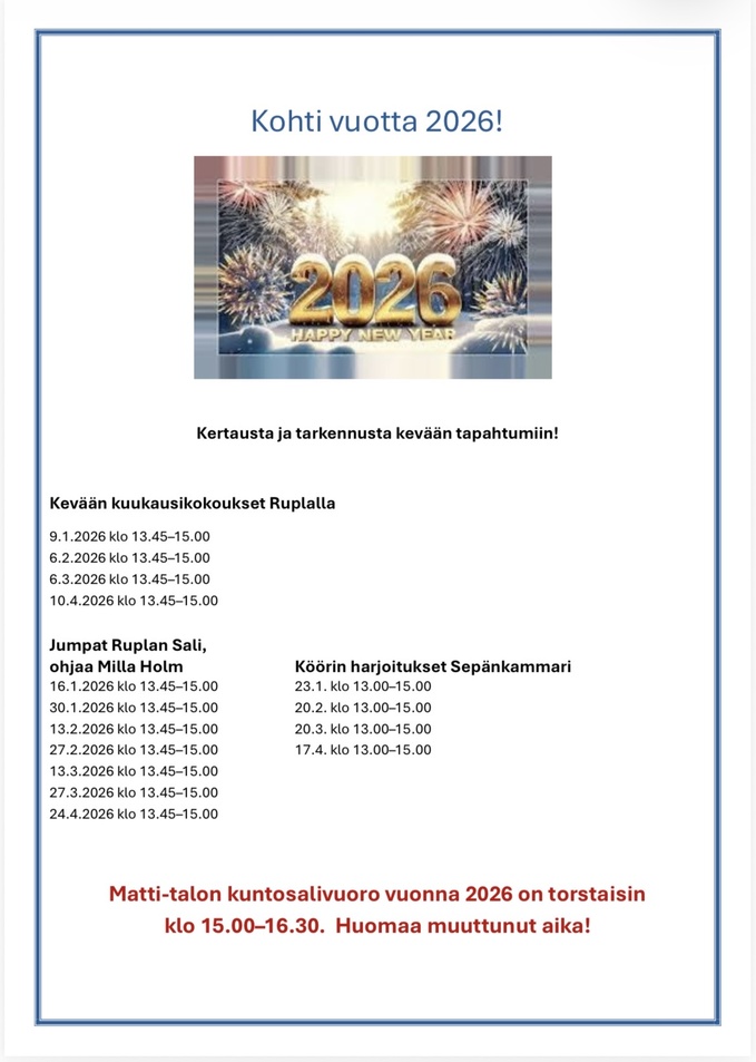 Kotisivuillamme kerromme kerholaisille tärkeät tapahtumat, siis seuraa sivujamme !